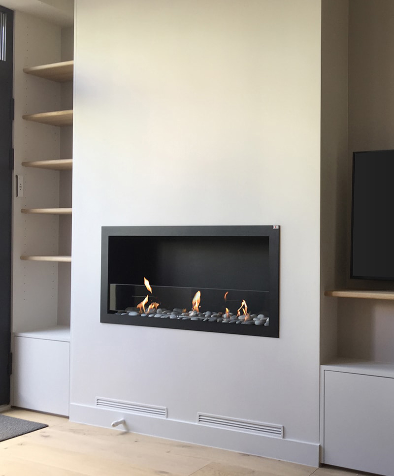 La cheminée éthanol est un bon compromis lorsque l'installation d'un conduit d'évacuation des fumées est impossible. Elle peut s'installer sans contrainte de raccordement dans votre pièce, elle a aussi l'avantage d'un faible encombrement. Utilisé avec un Bio-ethanol de qualité la combustion ne dégage pas d'odeur ni de fumée et offre une sécurité d'utilisation.