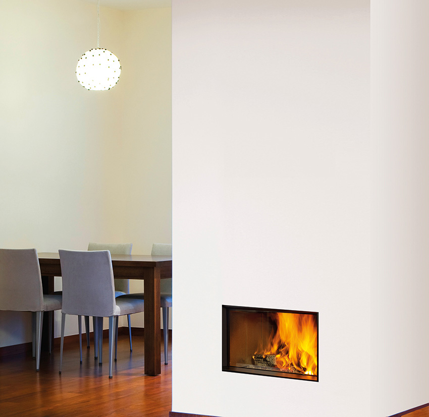Ce foyer possède une vitre escamotable permettant une utilisation fermée ou partiellement ouverte pour profiter de la flamme. Il est possible de choisir un intérieur en acier ou fonte, et un pare feu escamotable est présent sur la série Diamond.