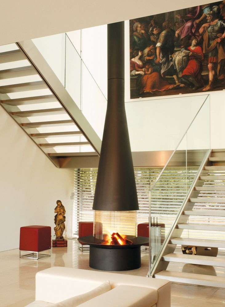 Au cœur de cette cheminée se trouve un foyer accueillant, prêt à réchauffer les cœurs et les âmes lors des soirées fraîches. Les flammes dansantes créent une atmosphère réconfortant, invitant à la détente et à la convivialité. De plus grâce a son design raffiner, cette cheminée a obtenu la médaille d'or des \"Trophées du design\" au salon Batimat.