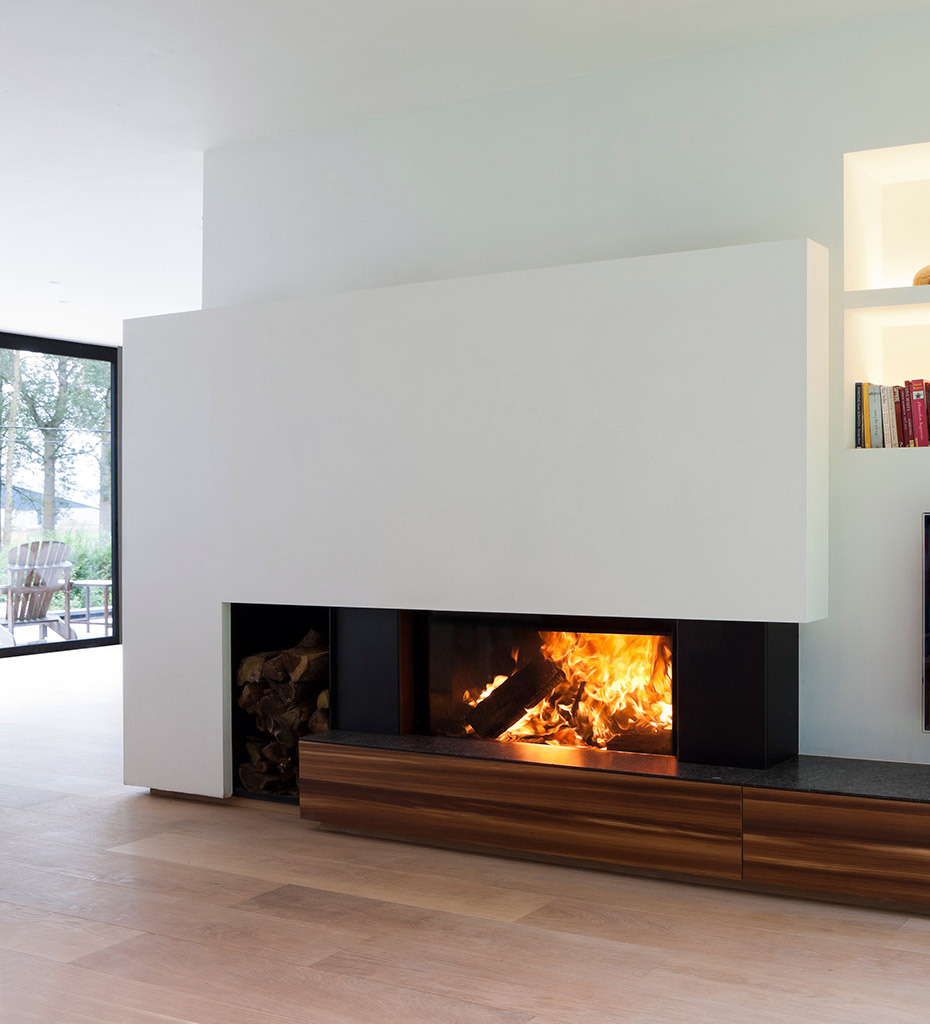 La Cheminée Bois Luna Diamond 1000 H fait partie des cinq foyers bois panoramiques proposés par M-Design.