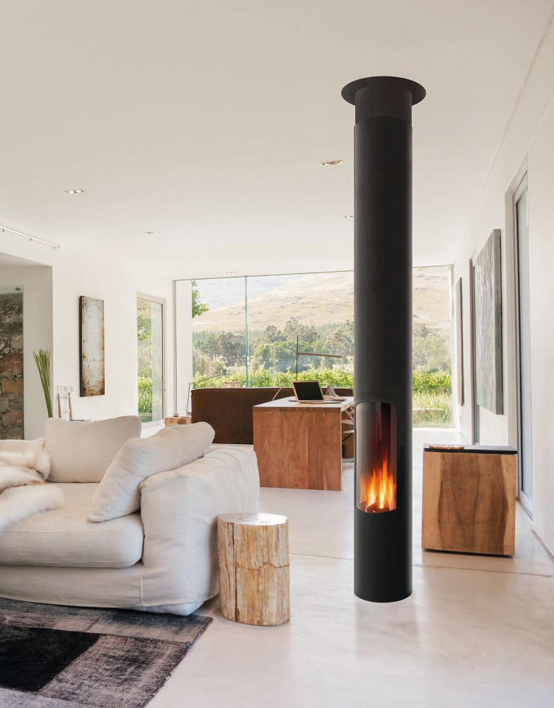 Le Slimfocus gaz est un foyer central de faible encombrement. Il peut également trouver sa place en angle ou en position murale. Son circuit étanche le rend compatible avec les maisons RT 2012.